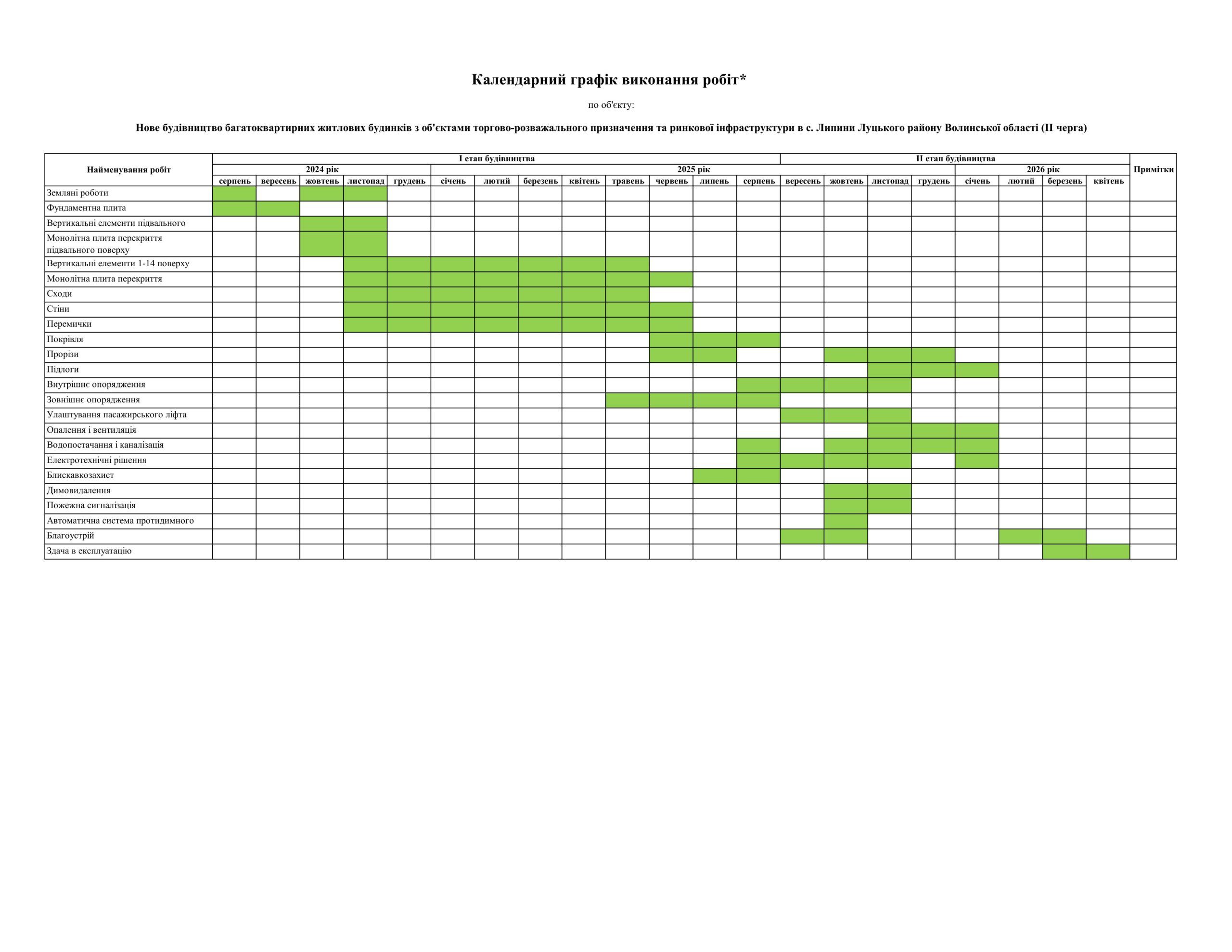 1) Нове будівництво багатоквартирних житлових будинків з об’єктами торгово-розважального призначення та ринкової інфраструктури в с.Липини Луцького району, Волинської області (ІІ черга)»