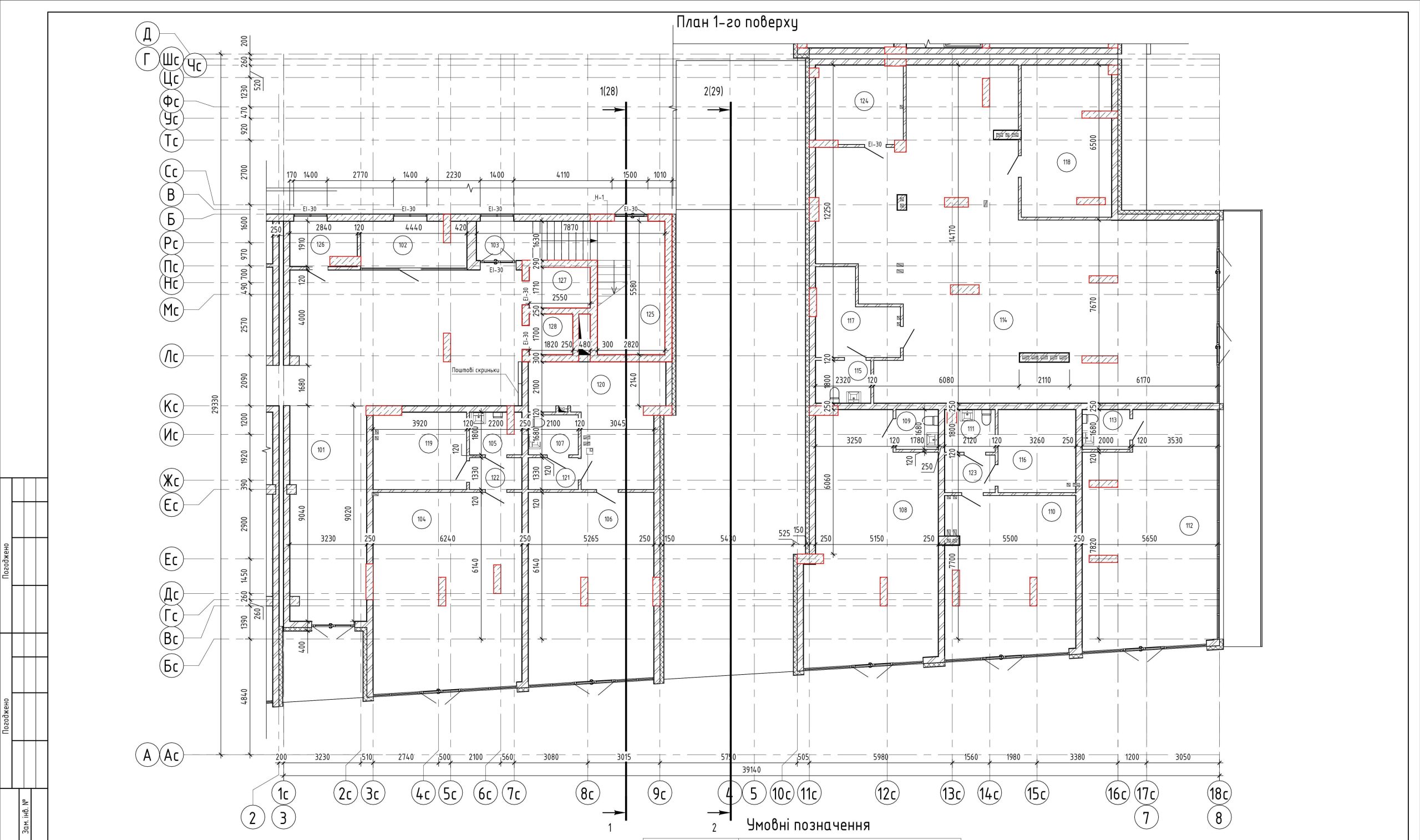 Вертикальні конструкції першого поверху: улаштування залізобетонних колон і пілонів.