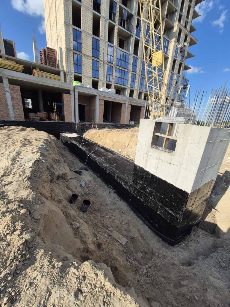 - Влаштовано гідроізоляцію цоколю та зворотну засипку.